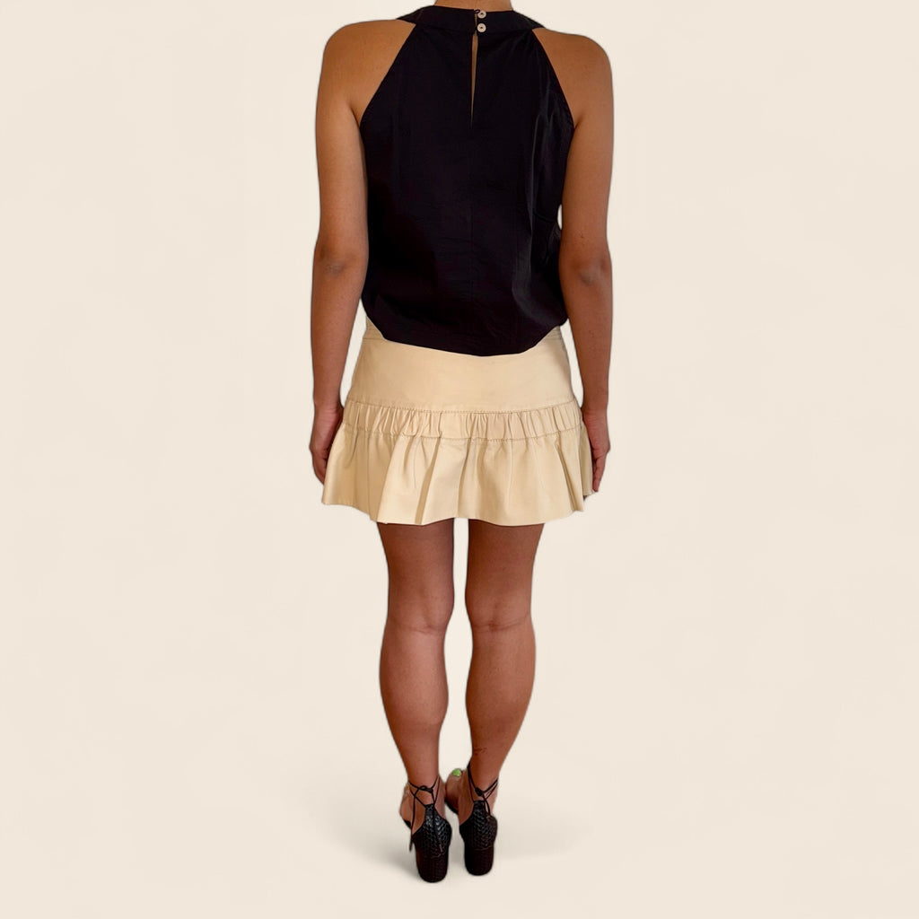 Mini skirt crafted from genuine leather, featuring a soft touch and impeccable fit.