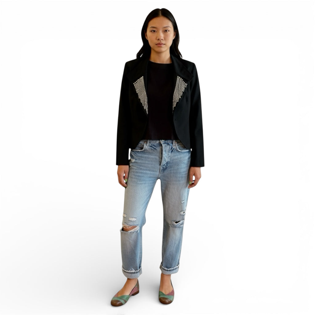 Black Cardigan with Embroidered Collar | Marcelo Quadros