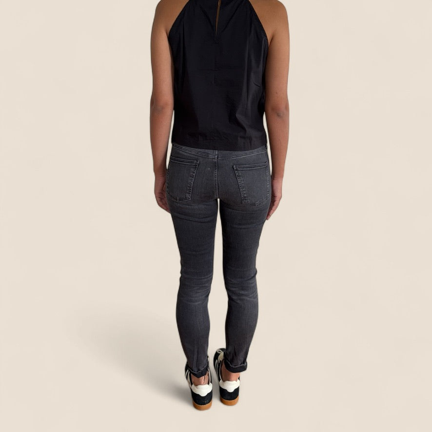 Zara piece, cleaned and in good condition — slightly faded, which adds extra character and a cool, worn-in look. Skinny fit with elastane for comfort, perfect for everyday wear or casual occasions. The hem has been cut with scissors for a raw, frayed finish — stylish and modern. (Shown folded in the photo.)