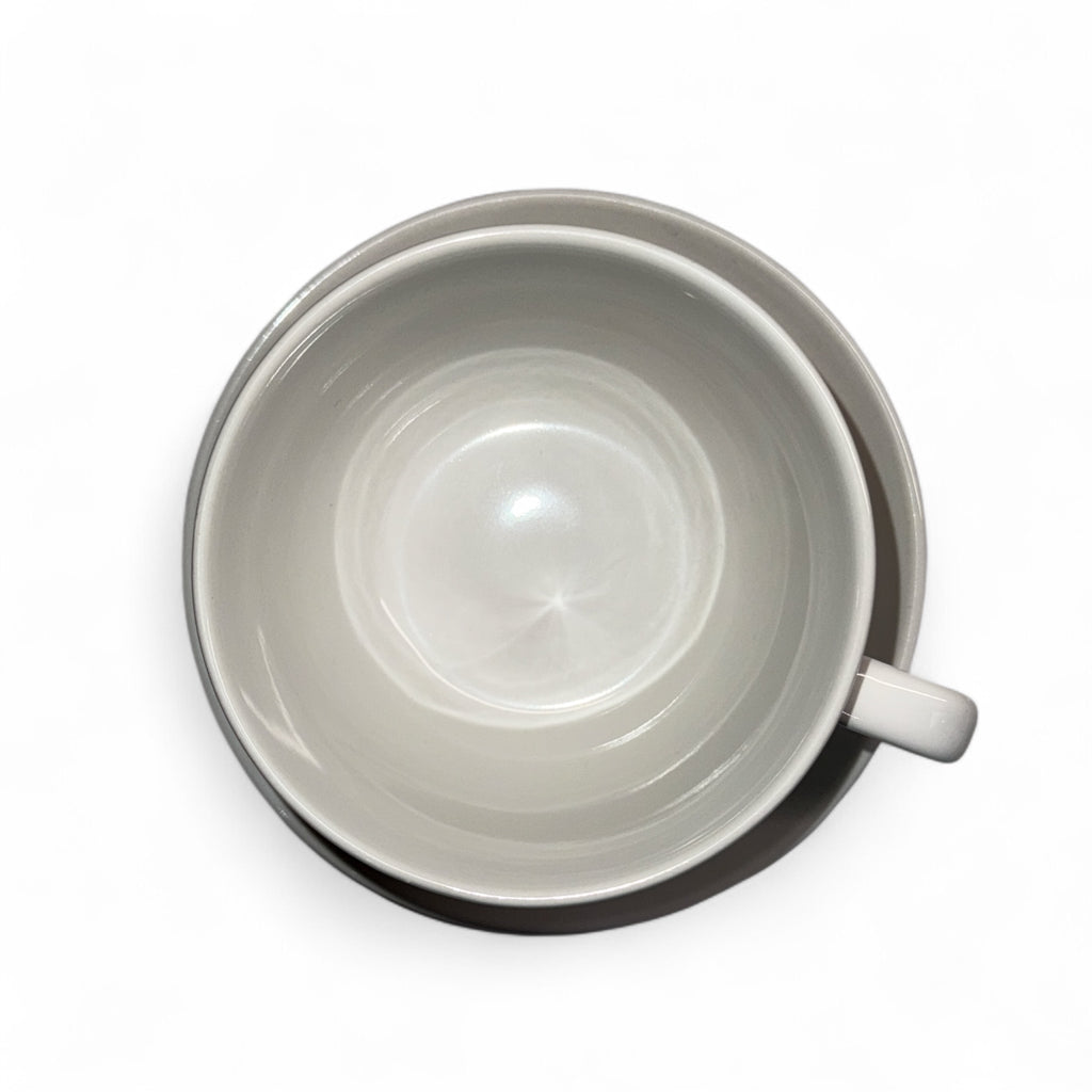 Clássico e elegante conjunto de 6 xícaras tamanho jumbo com pires, em porcelana branca de alta qualidade. As peças são Dishwasher & Microwave safe, ou seja, seguras para lava-louças e micro-ondas. Em excelente estado geral — apenas uma das xícaras apresenta leve sinal de uso no fundo. Ideal para cafés generosos, cappuccinos, chás ou servir com estilo.
