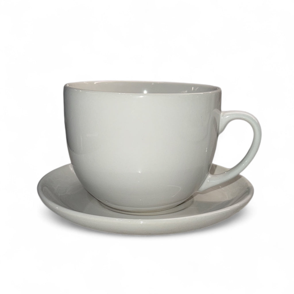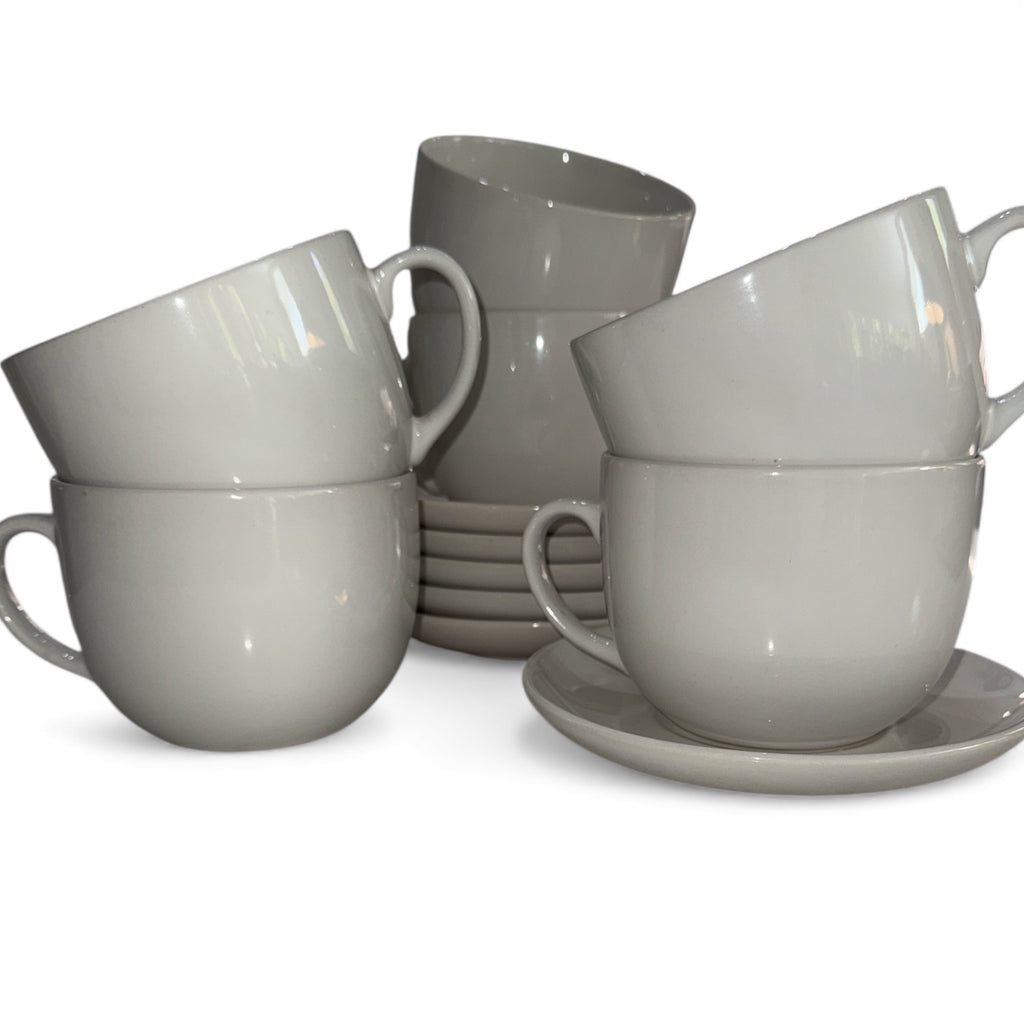 Conjunto de 6 Xícaras Jumbo com Pires – Cerâmica Branca