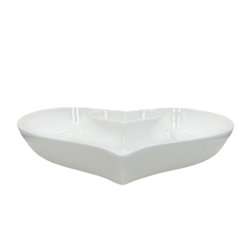 Prato de Cerâmica Branco em Formato de Coração – Duplo Compartimento